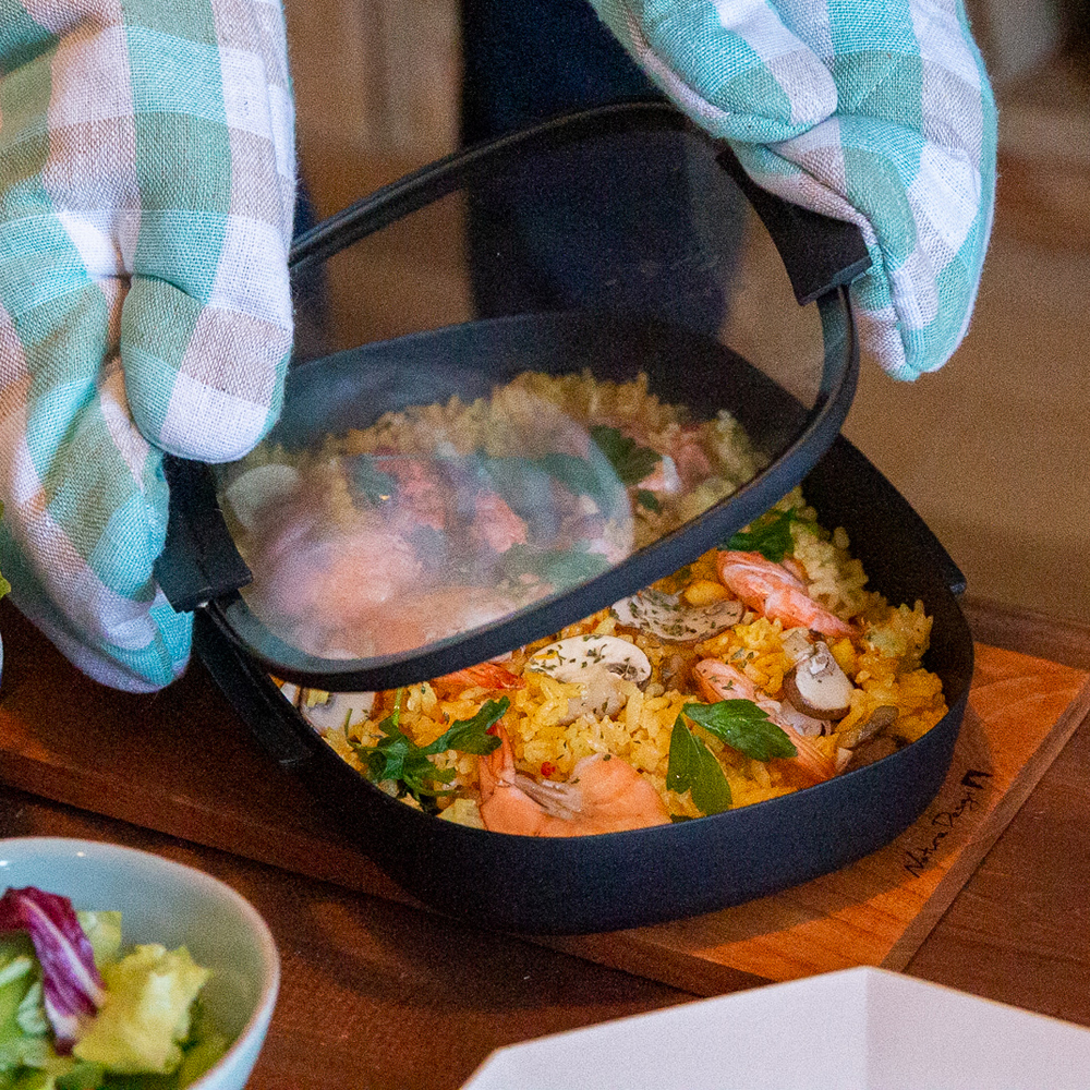 直火・上火調理にも耐え、またフタ裏で結露しないためフタをしたままクリアな視界を確保できます。