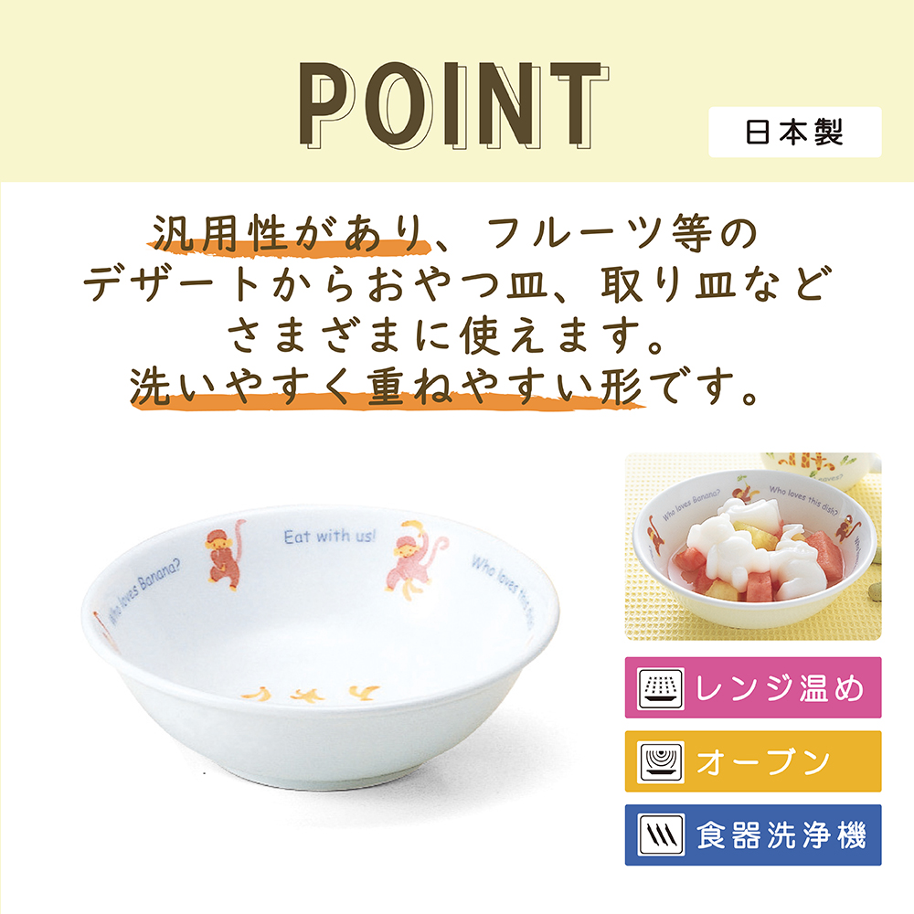 割れにくい、強化耐熱磁器「テクノセラム」なので、お食い初め・離乳食の時期からでも安心してお使いいただけます。