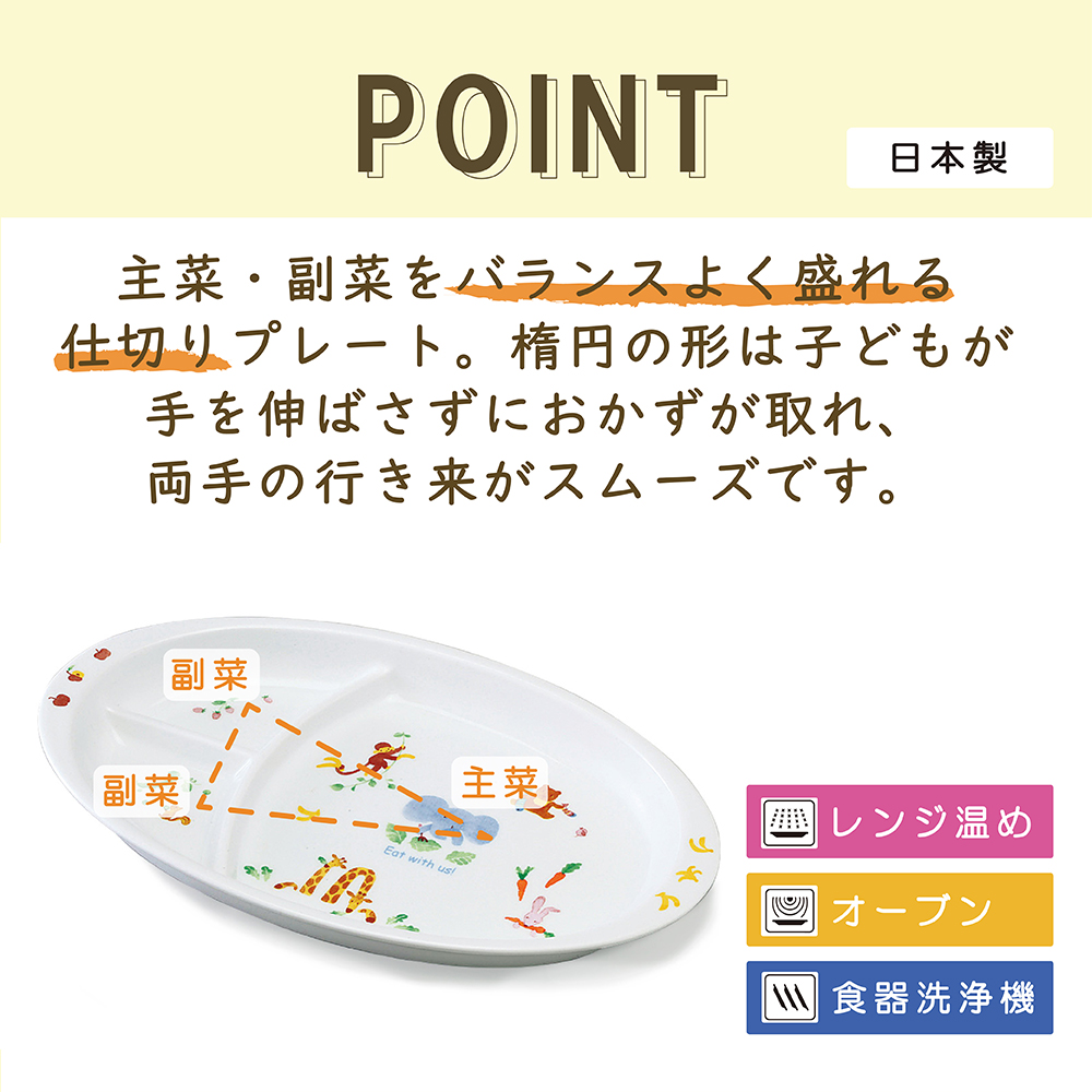- 「食育応援!」バランスの良い食べ方が自然に身につくのがこのプレート。