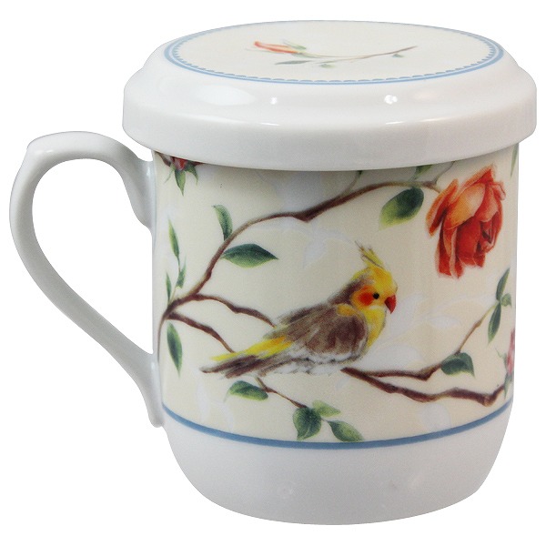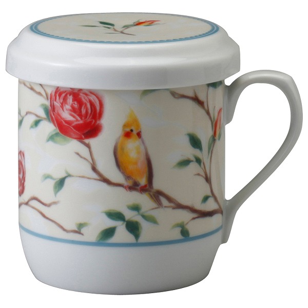 ナルミ フタ付マグカップ(インコとバラ) 290cc 電子レンジ温め対応 (41531-32930)
