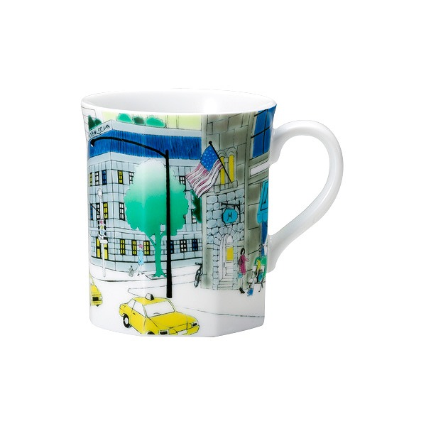 人気の旅マグシリーズにアメリカの街をイメージした絵柄が登場。旅行の記念品や、これから海外へ旅立つ人への贈り物にもおすすめ。底が八角形になっています。