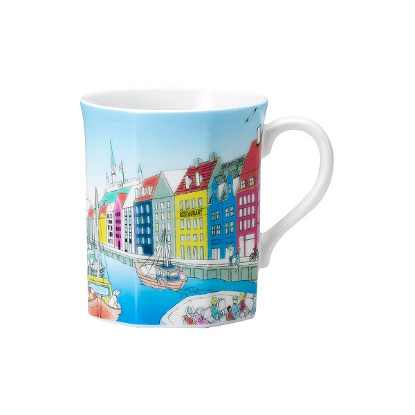 人気の旅マグシリーズにデンマークの街をイメージした絵柄が登場。旅行の記念品や、これから海外へ旅立つ人への贈り物にもおすすめ。底が八角形になっています。