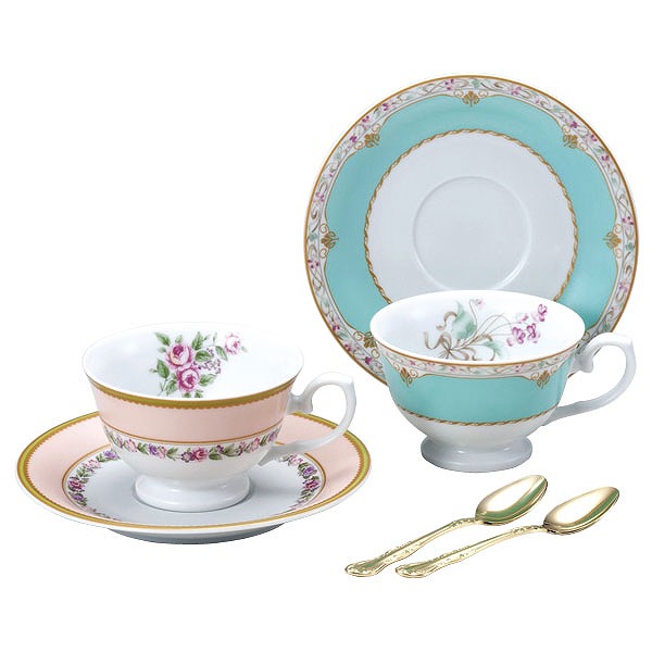 ティーカップ&ソーサー 190cc×2(アソート)/スプーン×2