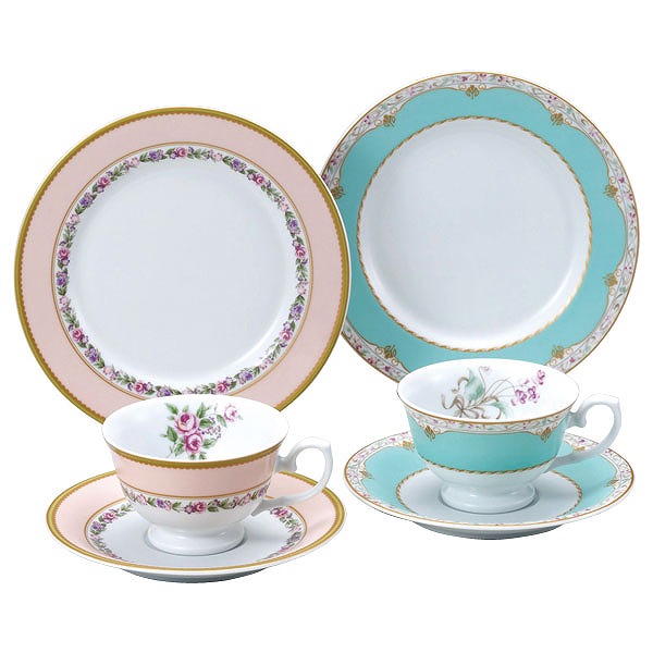 ティーカップ&ソーサー 190cc×2(アソート)/ケーキプレート 19cm×2(アソート)