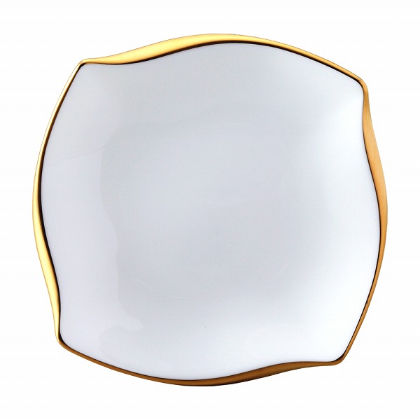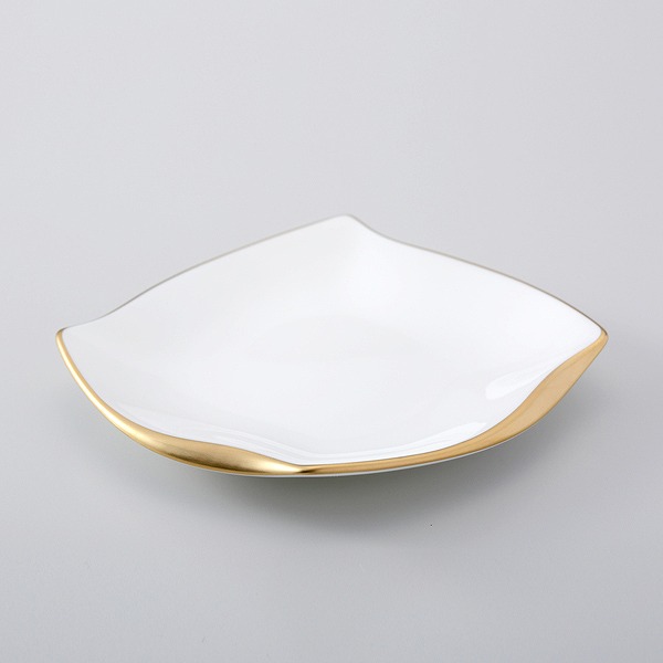 11cm角の小さなトレイ。流れるフォルムに金の縁がおしゃれ。お菓子や、オードブルなど一口を上品に盛り付けたいときに。