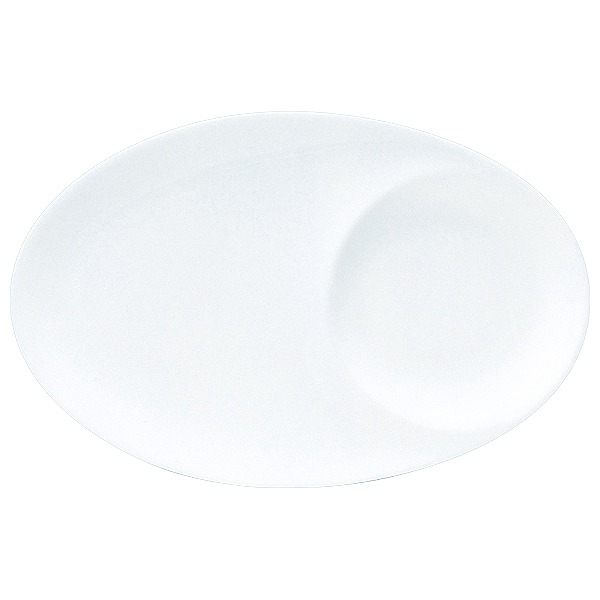 片側に円形の仕切りが付いた、楕円のお皿。