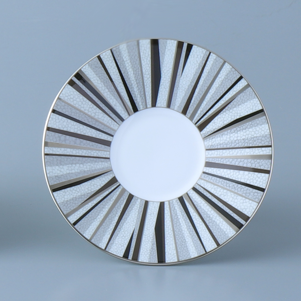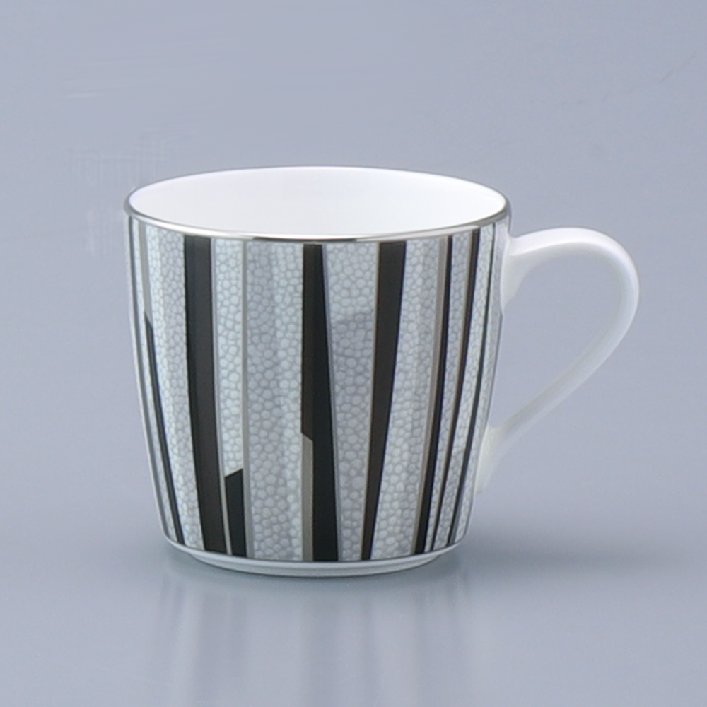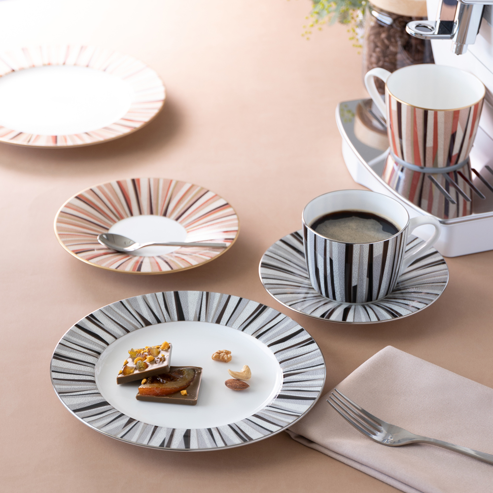 「大人が楽しむ豊かな時間」をテーマにデザインしました。ボーンチャイナの白を基調に、モダン且つシンプルなデザインとシャグリーン(鮫肌)調の表面仕上げで、落ち着きのあるテーブルウェアです。