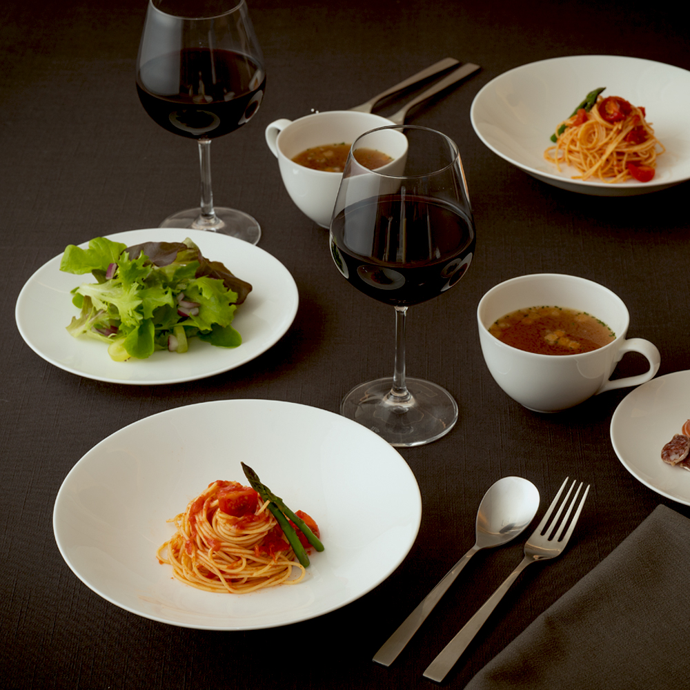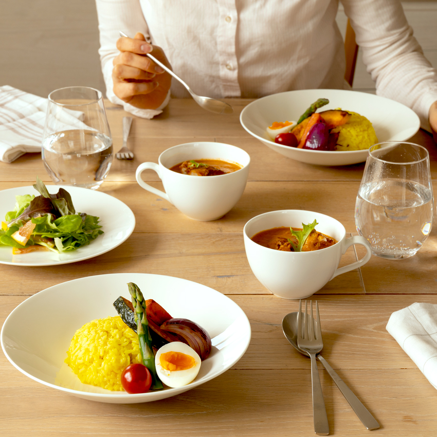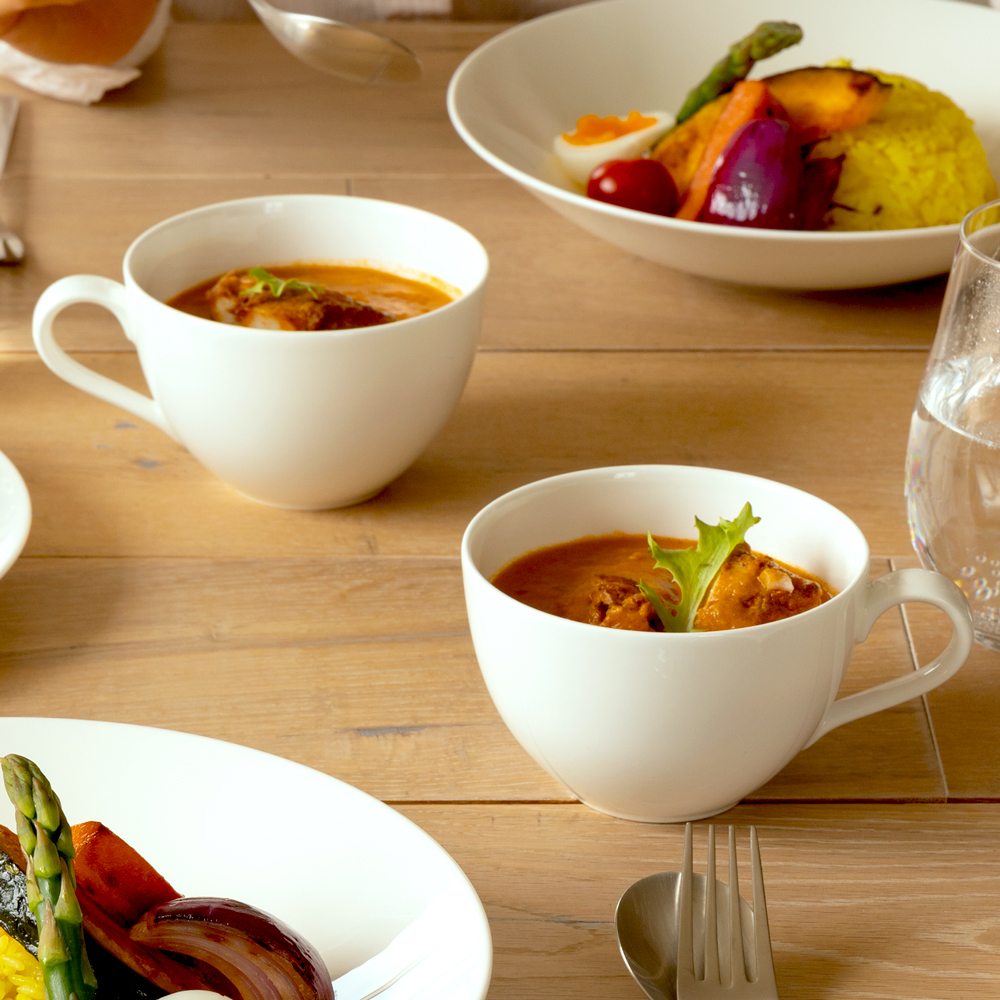 絵柄のないシンプルな白のスープカップは、これまでのスタイルズシリーズはもちろん自由な組み合わせで、食材を選ばない日常使いにもピッタリ。