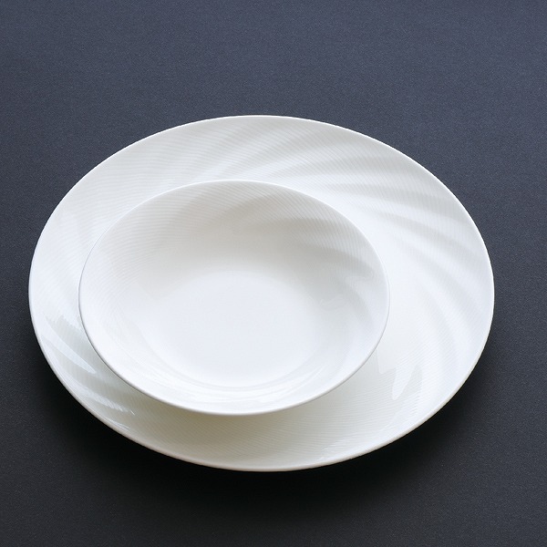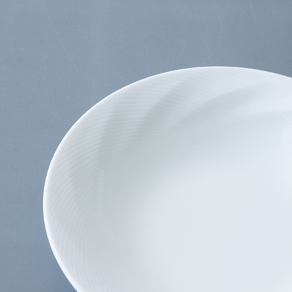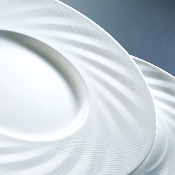 幾度にも重なるレリーフは、角度やライティングにより違う表情を見せ、プレゼンテーションに動きを与えます。幅広いラインナップを取り揃え、洋食から中華まで、朝食からディナーまで、様々なシーンでお使いいただけます。