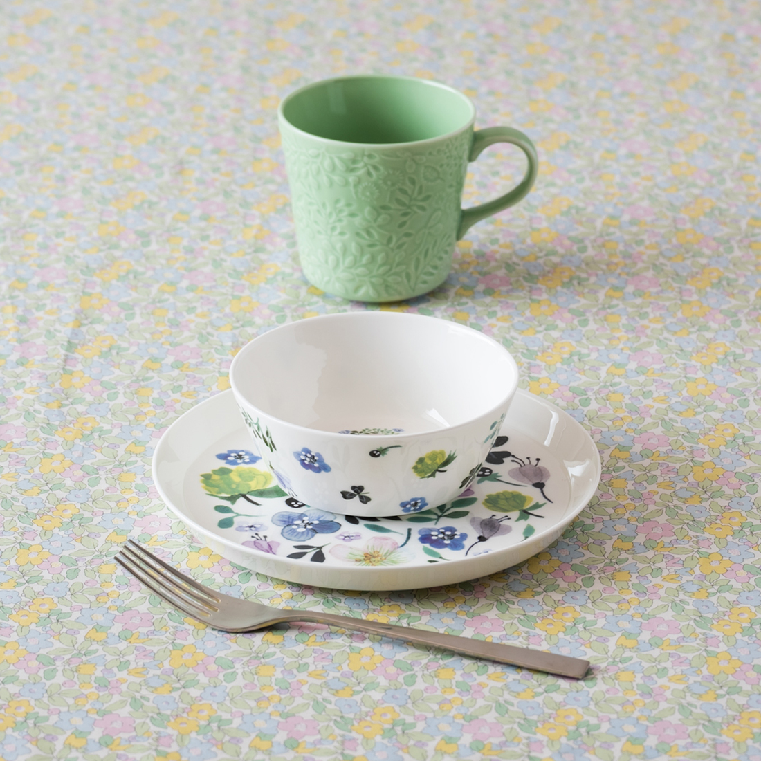 自然と共に暮らし四季の花々や風景を描くアンナ・エミリア。彼女の愛らしく深みのあるデザイン画をテーブルウェアに彩りました。