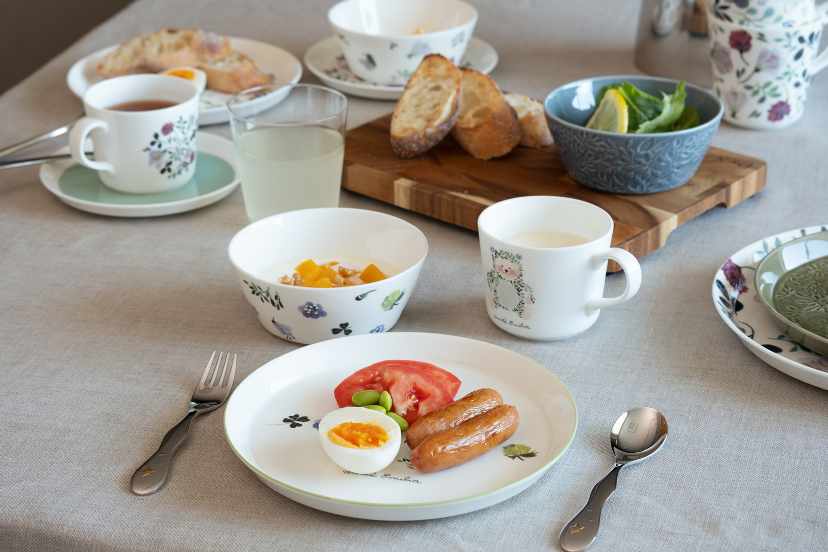 子ども食器だけど、大人も使いたくなる、大人になっても使える食器。年齢を超えた上質なライフスタイルをお届けするシリーズです。既存の絵柄とマッチする色合いなので、テーブルの上でも組合せやすくなっています。