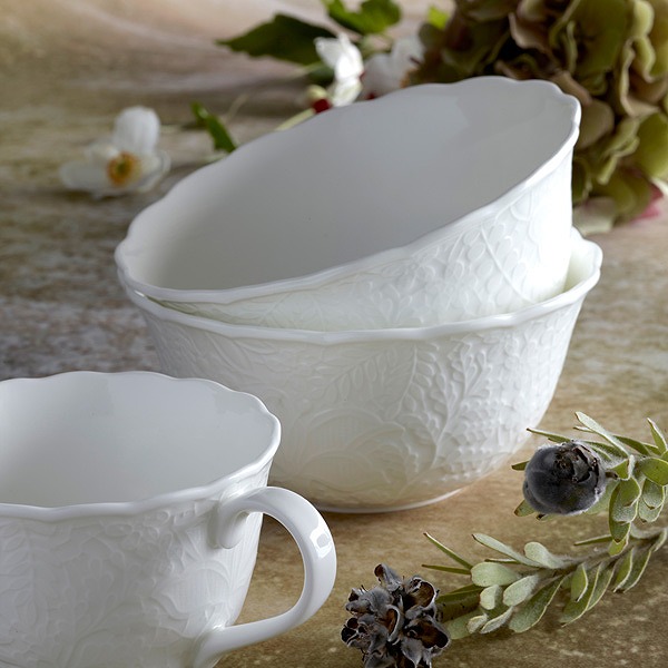 16世紀にイギリス南部ホニトンで生まれ、現在もイギリス王室でも珍重されている「ホニトン・レース」。イギリスのブライダルコーディネーターであるジョアン・リンジー監修の元、ホニトン・レースの上品で優しい風合いを器に表現しました。