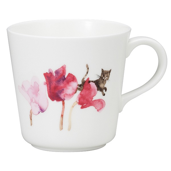 いわさきちひろ マグカップ(シクラメンと猫) 340cc 電子レンジ温め 食洗機対応 (52095-2923)
