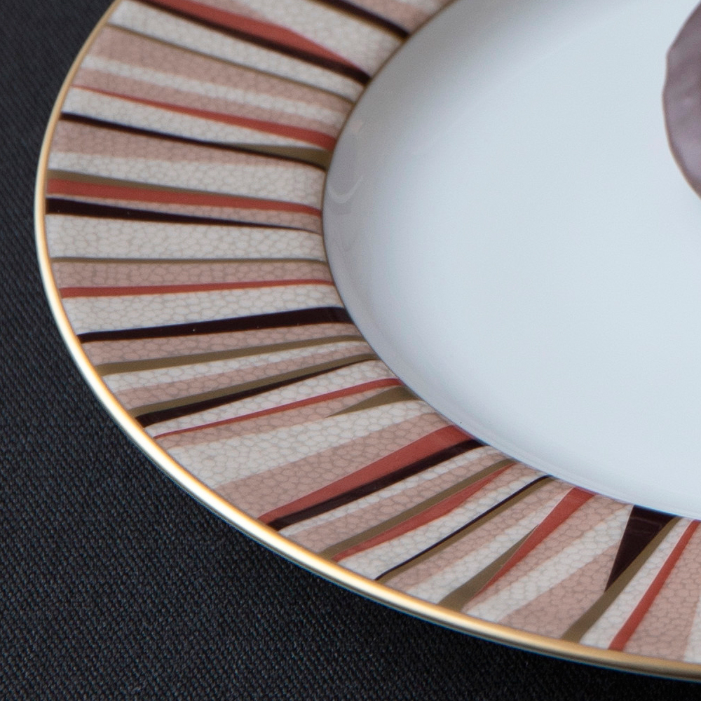 「大人が楽しむ豊かな時間」をテーマにデザインしました。ボーンチャイナの白を基調に、モダン且つシンプルなデザインとシャグリーン(鮫肌)調の表面仕上げで、落ち着きのあるテーブルウェアです。