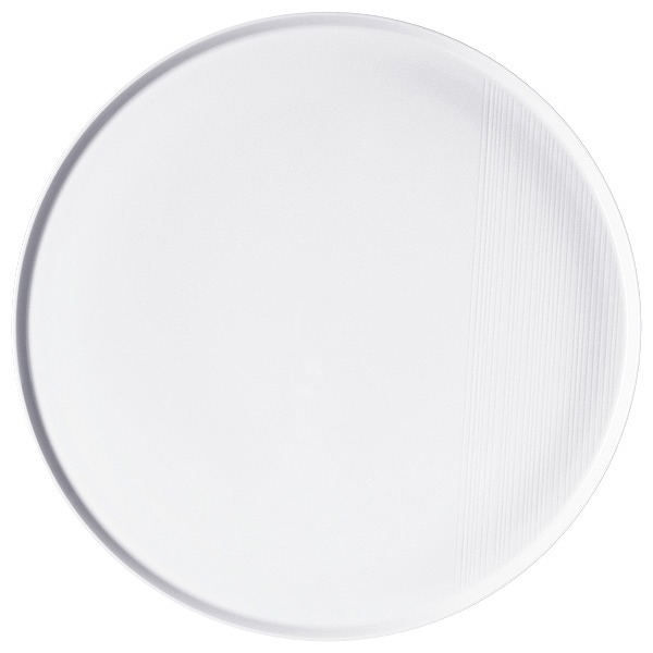 フラット面が広くリム部分が狭い立ち上がりの形状に、さりげない線レリーフを入れた和を感じるデザイン。