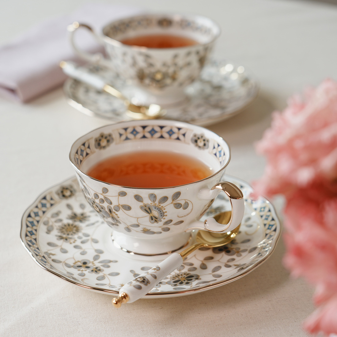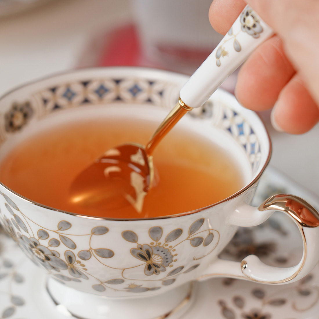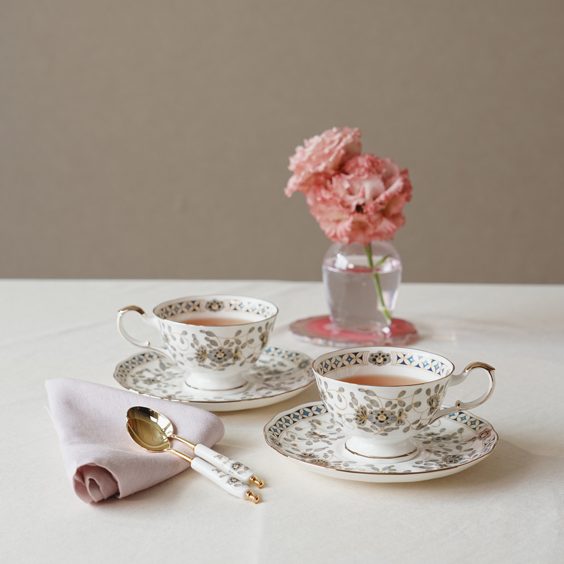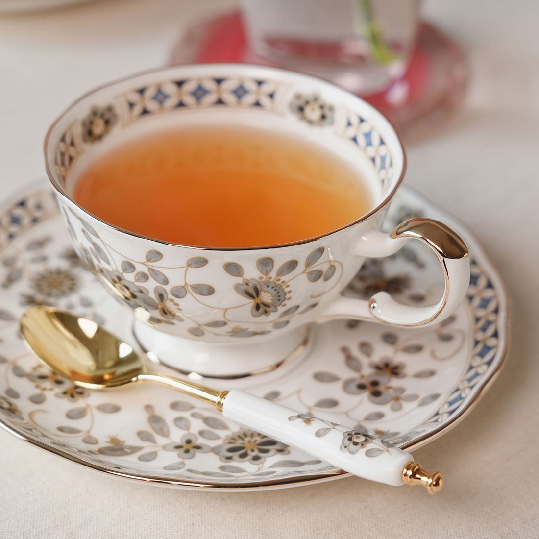 ティースプーン:真鍮(金メッキ) / 柄 カップ&ソーサー ボーンチャイナ<br>