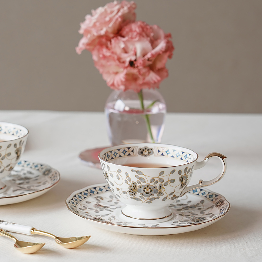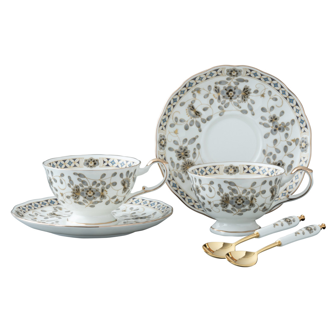光りを受けて輝くシャンパンゴールドの金彩と深みのある黒の装飾で贅沢なティータイムを彩るブラックミラノシリーズから日頃のご愛顧に感謝を込めて、数量限定のお得なスプーンとカップ&ソーサーのティーセットです。
