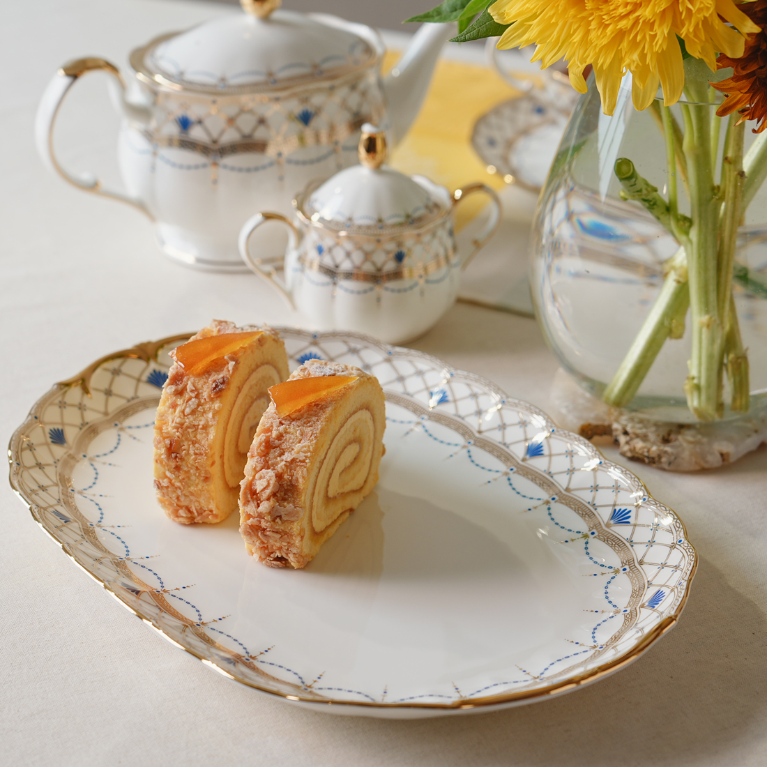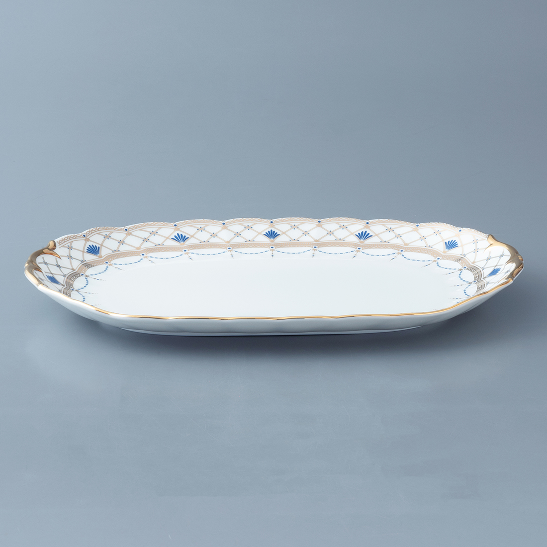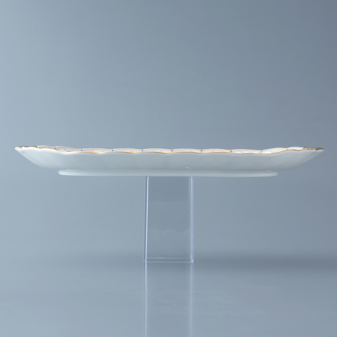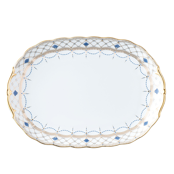 宝石のような深みのあるブルーと煌めく金彩がふんだんに施された贅沢な装飾のプラター。