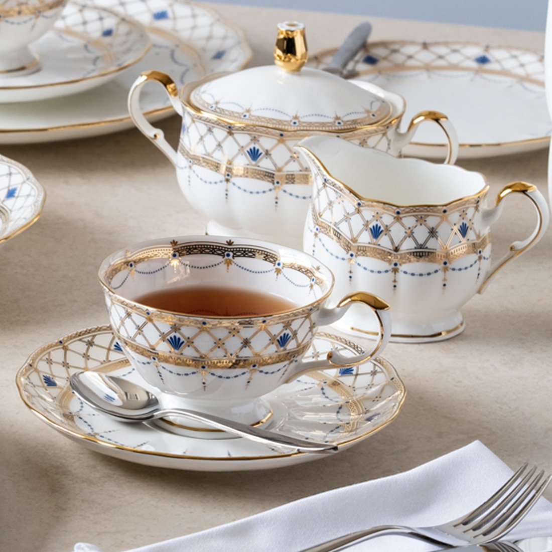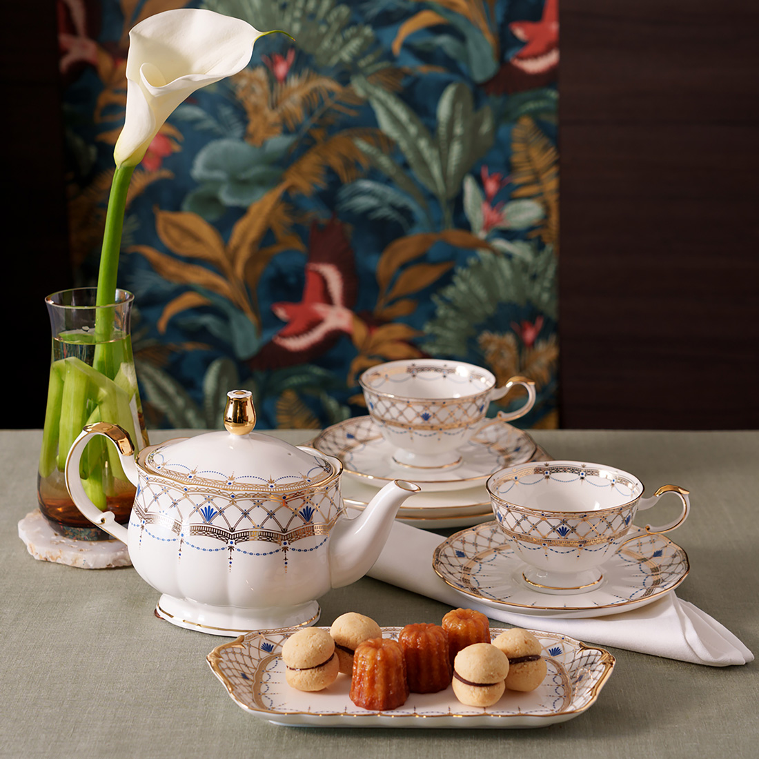 まるで宝石をまとったような気品あるデザインが、ティータイムに特別な輝きを添えます。二人だけの穏やかな午後や、大切な人とのおもてなしのひとときに。日常を少しだけ贅沢に彩る、心ときめくペアセットです。