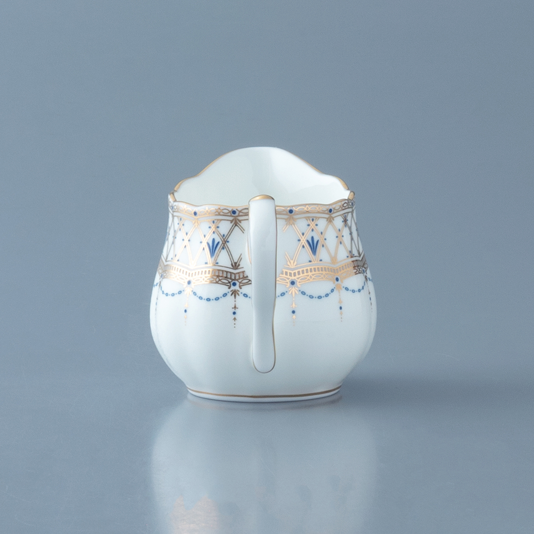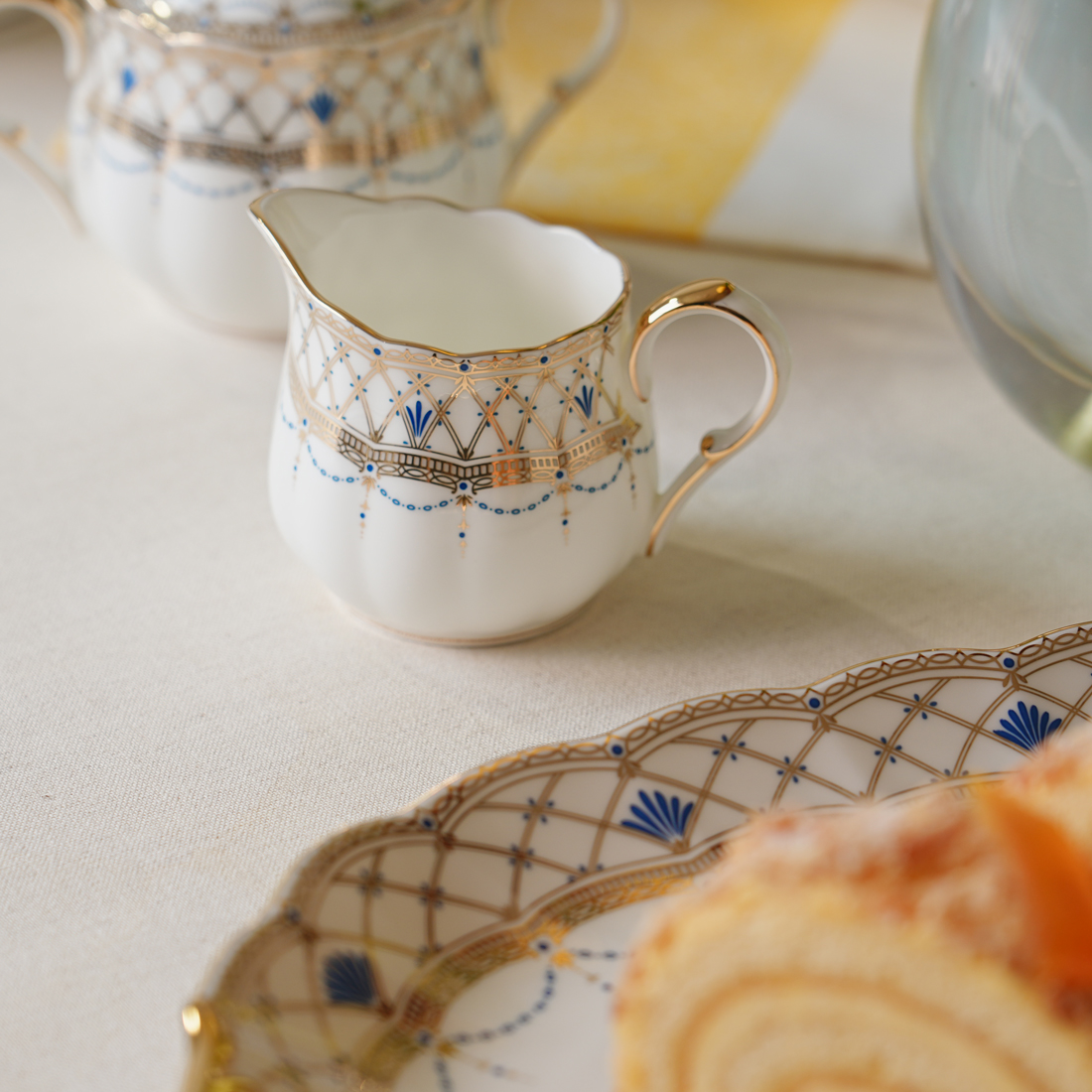 ハンドルの金装飾など、細部までこだわったデザインのクリーマーは、ミルクを注ぐティーアイテムとしてももちろん、お食事に添えるソースを入れた際にも活躍します。