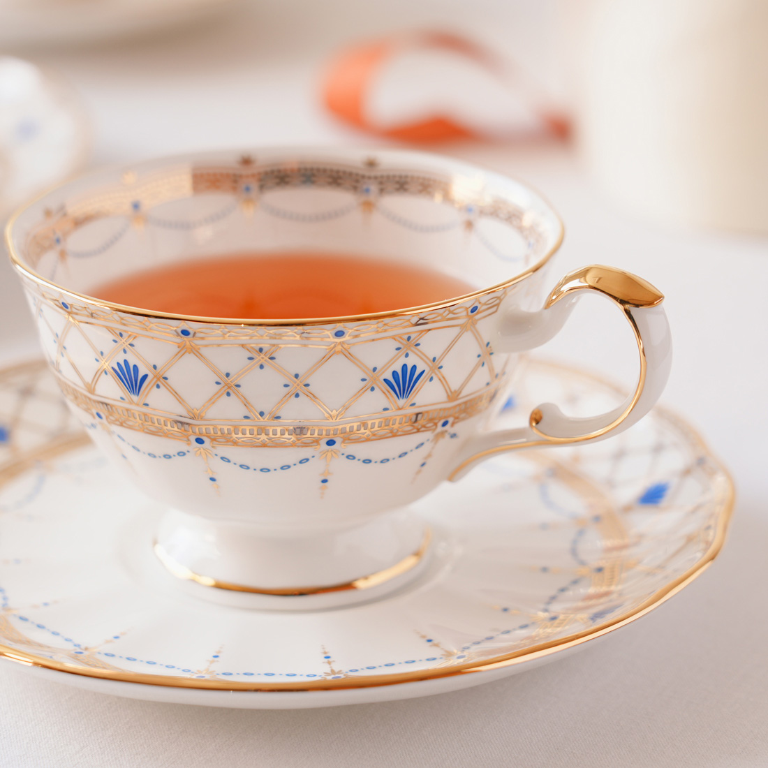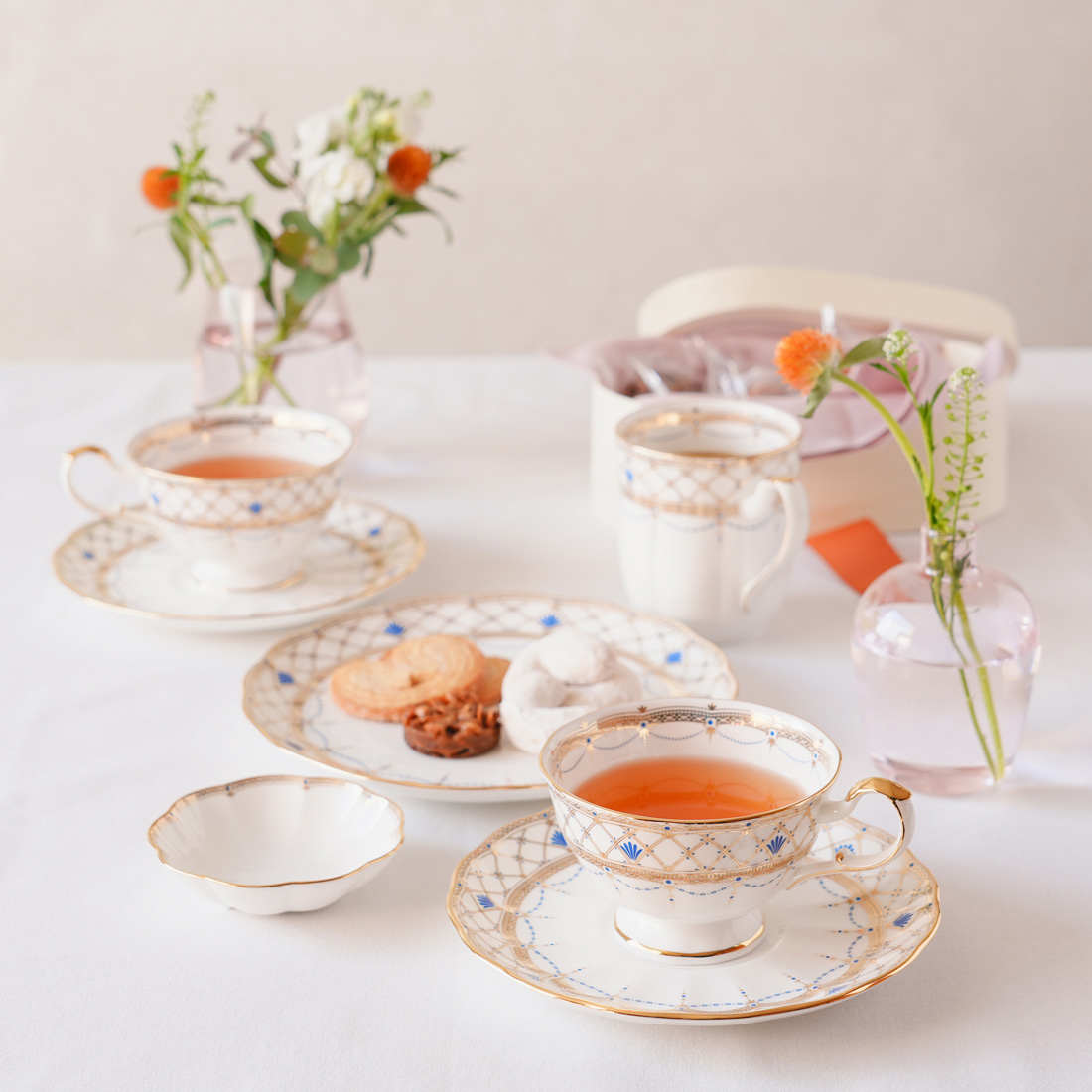 大切な誰かと囲む特別なティータイムを、繊細な金装飾が一層華やかに彩ります。紅茶のように澄んだ色合いの飲み物は上品に、コーヒーのように色の濃い飲み物はコントラストがついてクールに見せます。メイドインジャパンの上質なシリーズです。