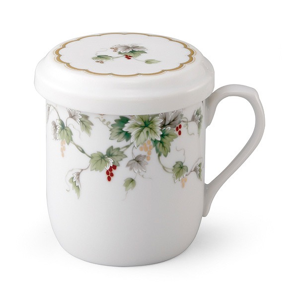豊穣を表すぶどうがやさしく描かれ、さりげない金彩が上品さをひきたてます。
