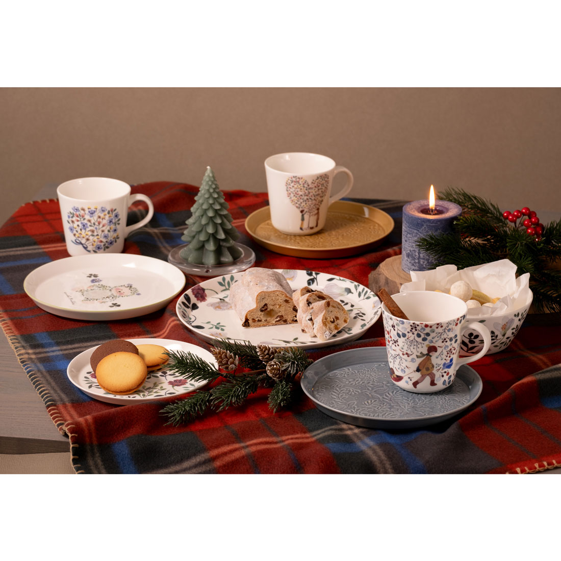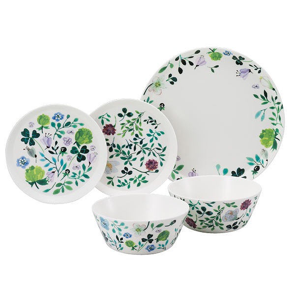 自然と共に暮らし四季の花々や風景を描くアンナ・エミリア。彼女の愛らしく深みのあるデザイン画をテーブルウェアに彩りました。