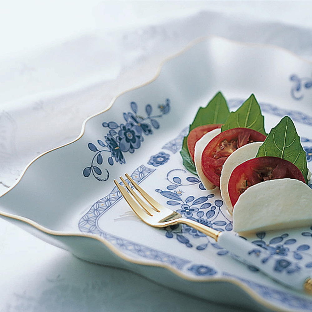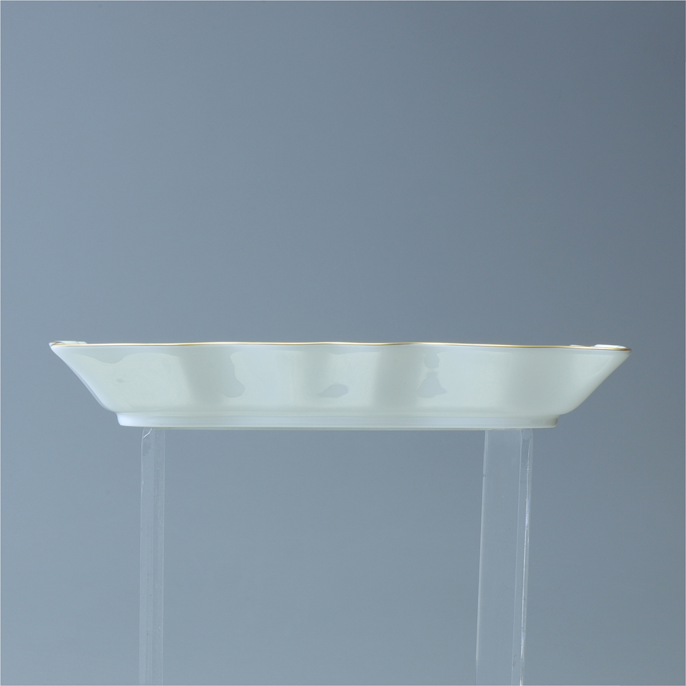 四角にフレアーの優しいラインをプラス。 便箋にペンを納めても絵になるお皿です。