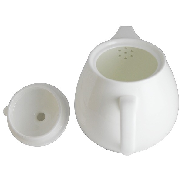 シンプルな白に、ころんとした形がかわいらしい、1人用のポット(満杯で500cc)