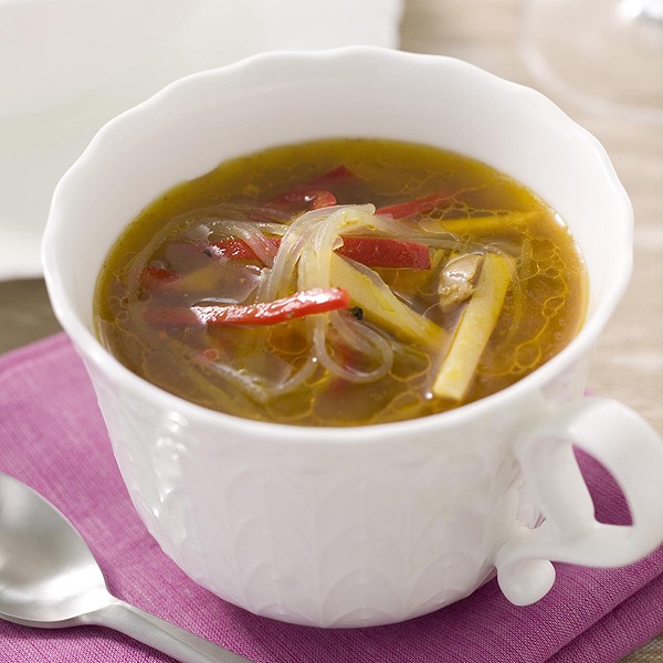 具だくさんのスープとパンでお手軽な朝食をいただく、