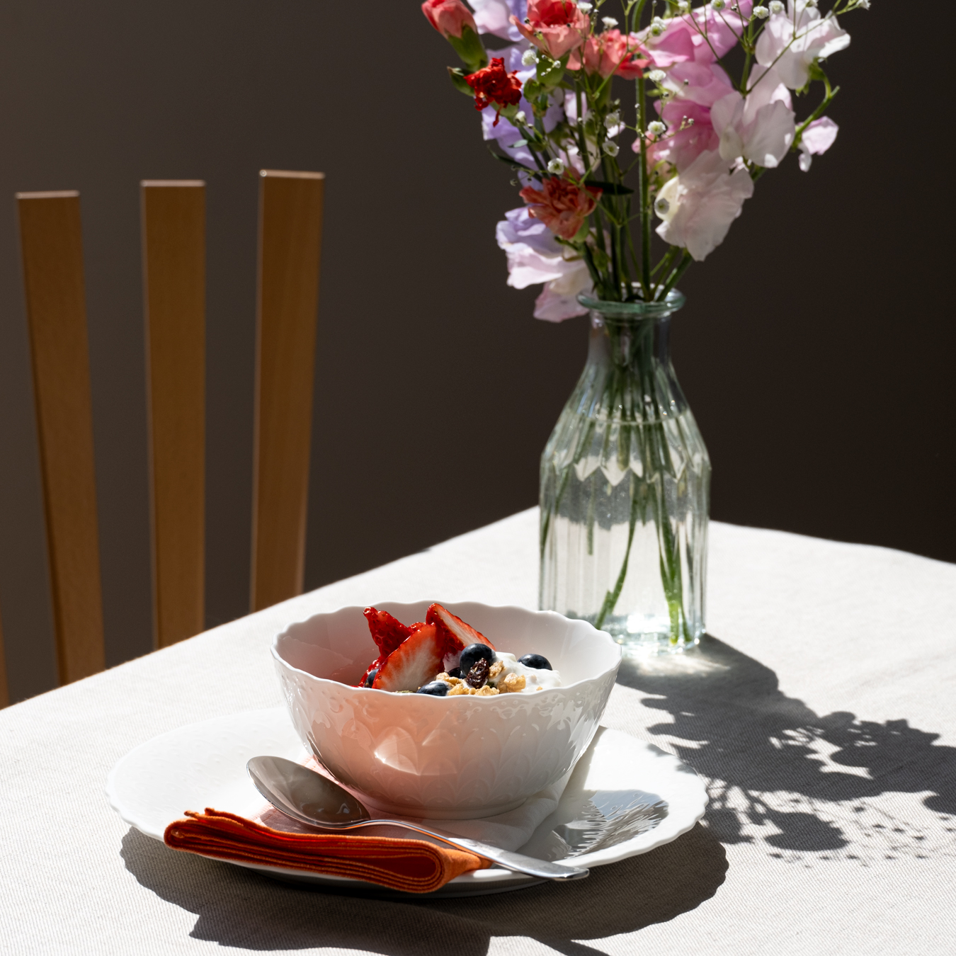デザートボウル、サラダボウル、取り皿に幅広くお使いいただけるサイズ。入れ子ボウルセットの中サイズと同じボウルです。