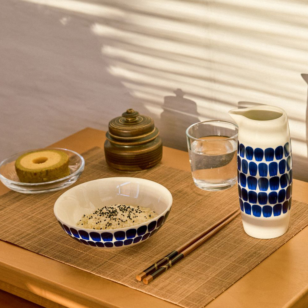 TUOKIOは「瞬間」を意味するフィンランド語。手書き風の青い模様は、ひとつひとつが大切な瞬間を象徴しているようです。