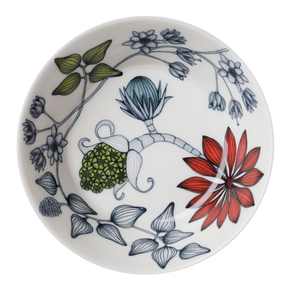 深いブルーの繊細なラインで描かれた花や葉、つぼみの美しいカラーコントラストが夏の生命感を感じさせます。