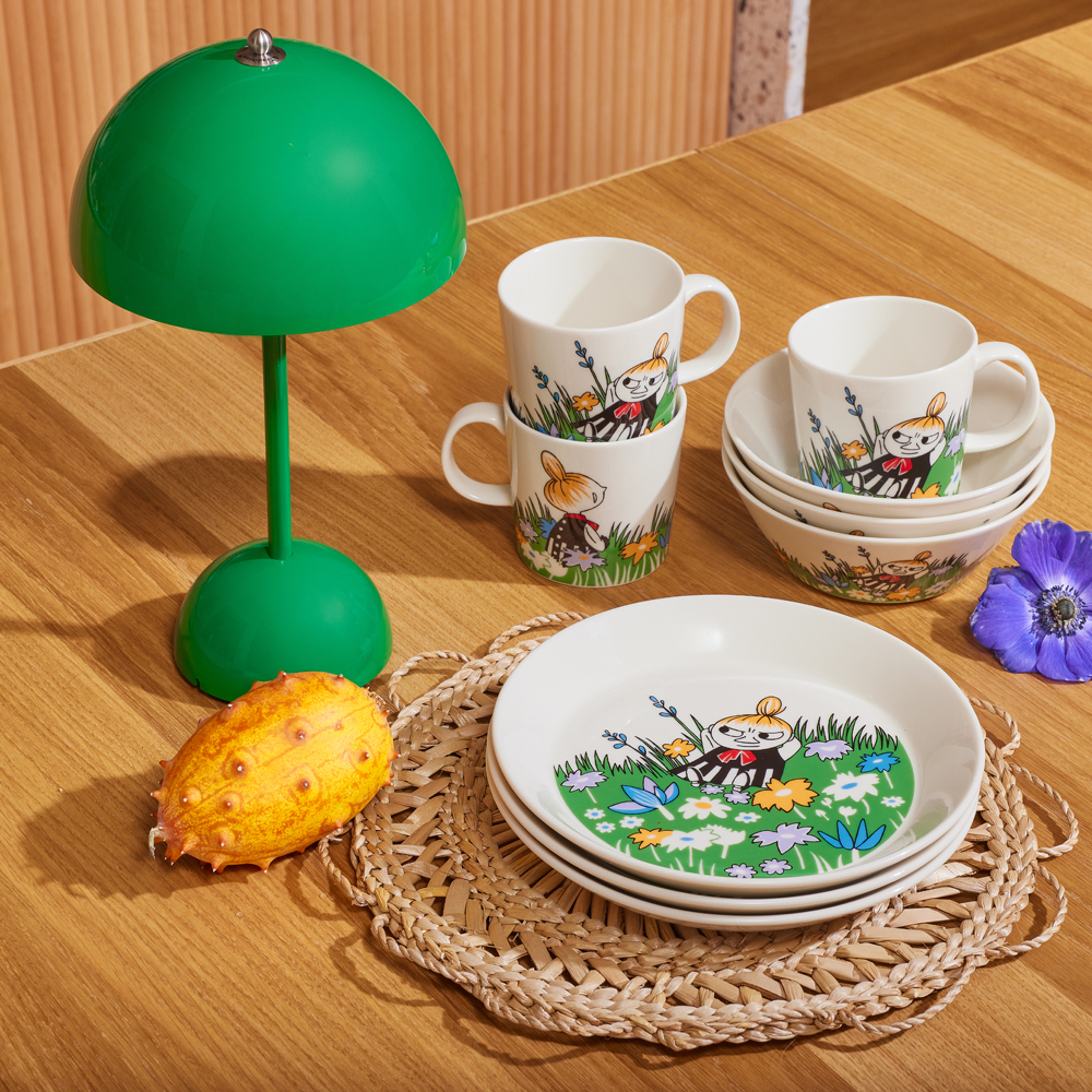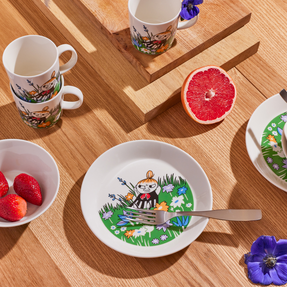 ちびのミイはムーミン谷で最も人気のあるキャラクターの一人。このイラストは2022年にリニューアルされた4回目のデザインで、彗星がムーミン谷に近づいてくるというストーリーをもとにしています。