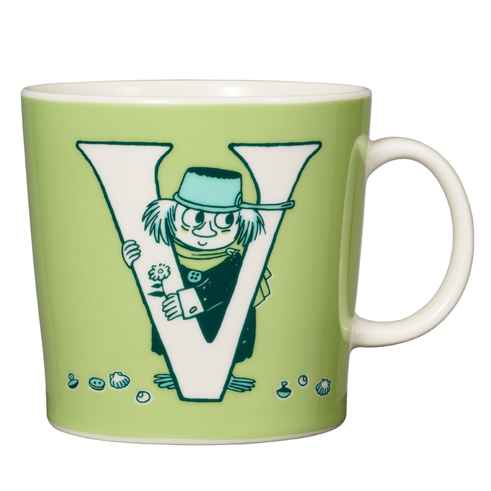 マグに描かれているアルファベットのイラストは、トーベ・ヤンソンが『 ムーミンパパの思い出 』 やムーミン谷の地図のために手書きしたイニシャルやレタリングがもとになっています。