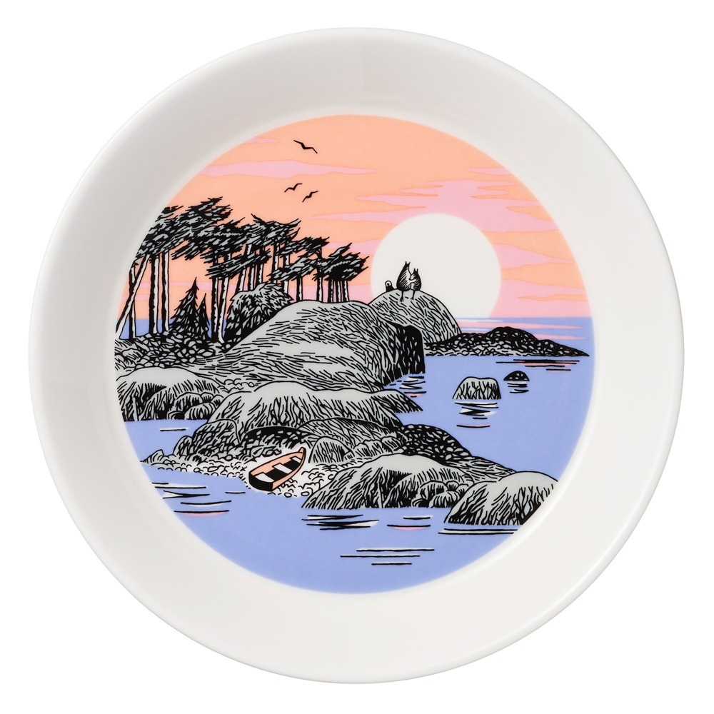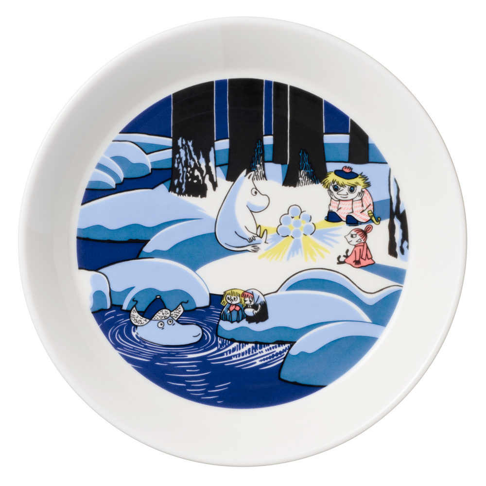 どこか懐かしさを感じる風景のプレートは、ほかのムーミンのマグやプレート、ティーマのコーディネートのアクセントにもなり、トレーや飾り皿などインテリアアイテムとしても活躍します。