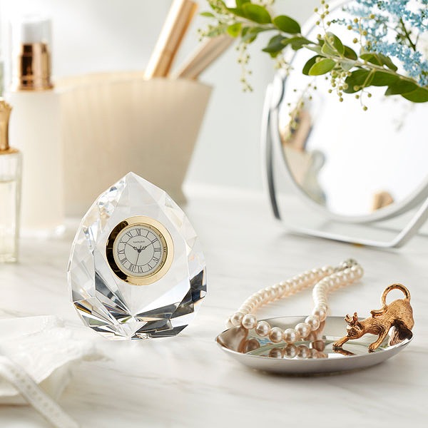 きらきらと光を反射するように細かなカットを施したティアドロップは、インテリアデコレーションアイテムとしても存在感のある時計です。
