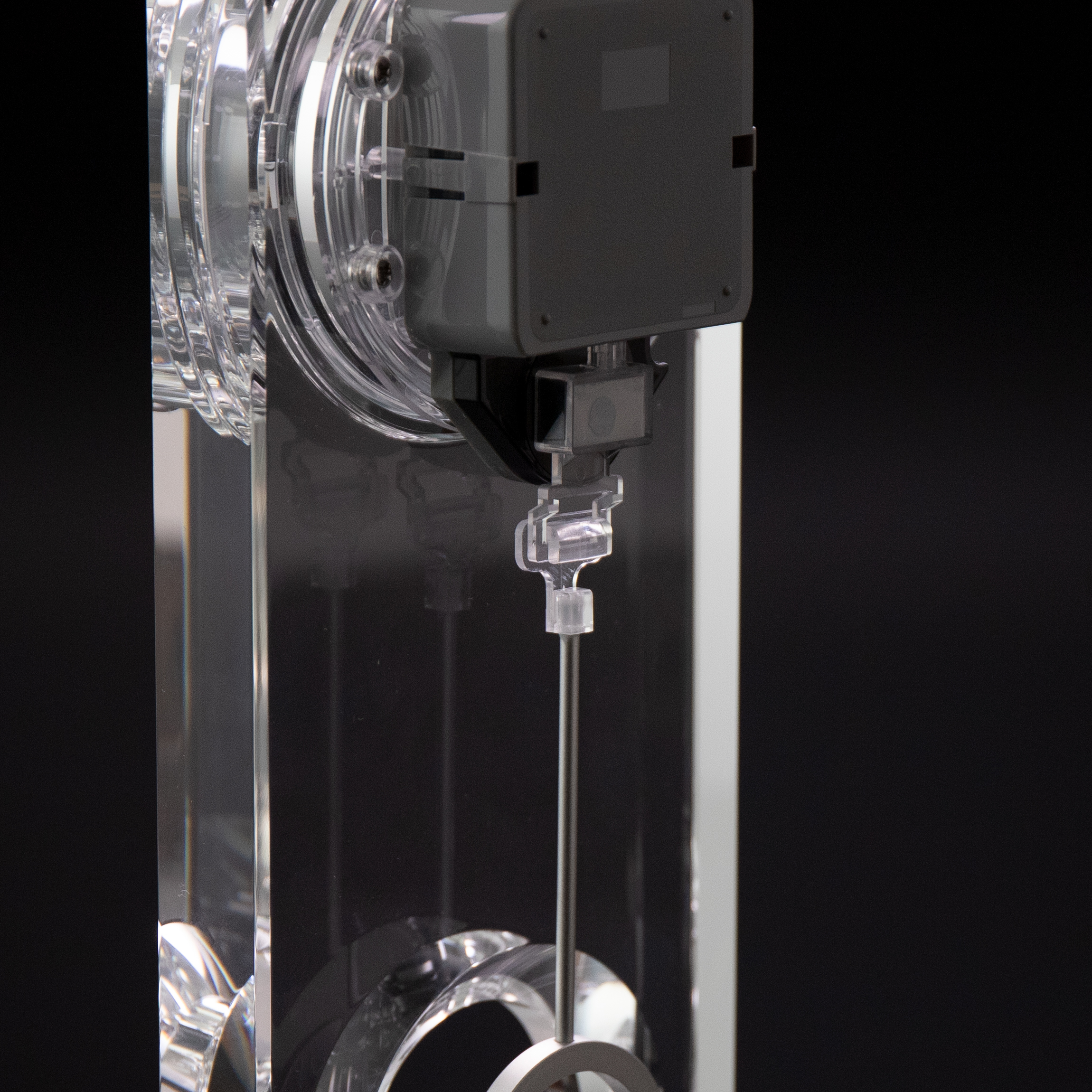 - おしゃれな振り子時計です。振り子の部分には穴が開いています。