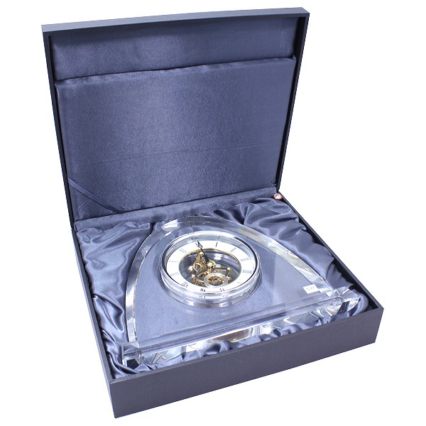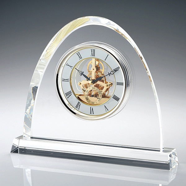 - 大きく、存在感のある置時計。時計部分もスケルトンになっていて見た目にも楽しく、高級感があります。 ※光の加減により一部が黒っぽく見えますが、透明なガラス製品です。 ≪光学ガラス(オプティカルガラス)≫ 光学カメラのレンズに使用される、澄んだ透明感を持つガラス。