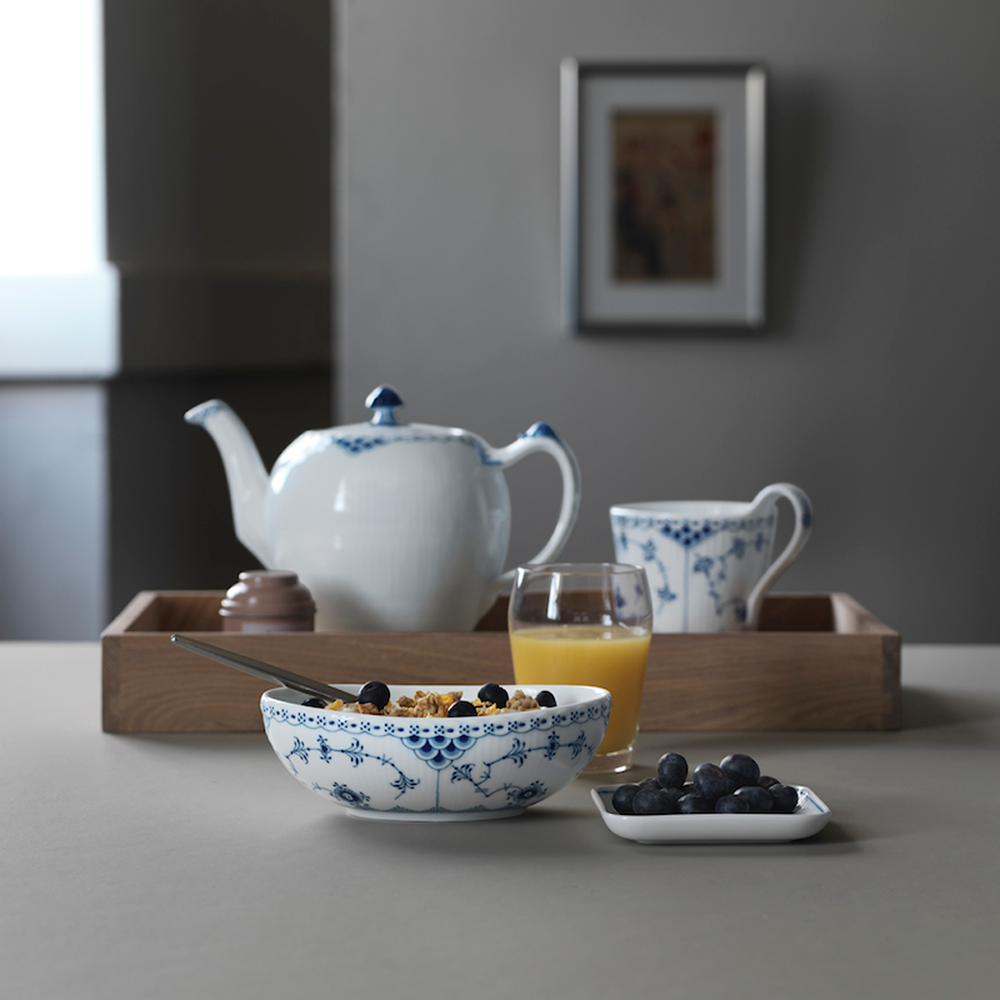 伝統ある ”ブルーフルーテッド ハーフレース“ とモダンなシェイプとの組み合わせが盛り付けるお料理の幅を広げます。ユニークな形のボウルはお食事用にも、スナックなどをいれてブレイクタイムにも活躍するアイテムです。