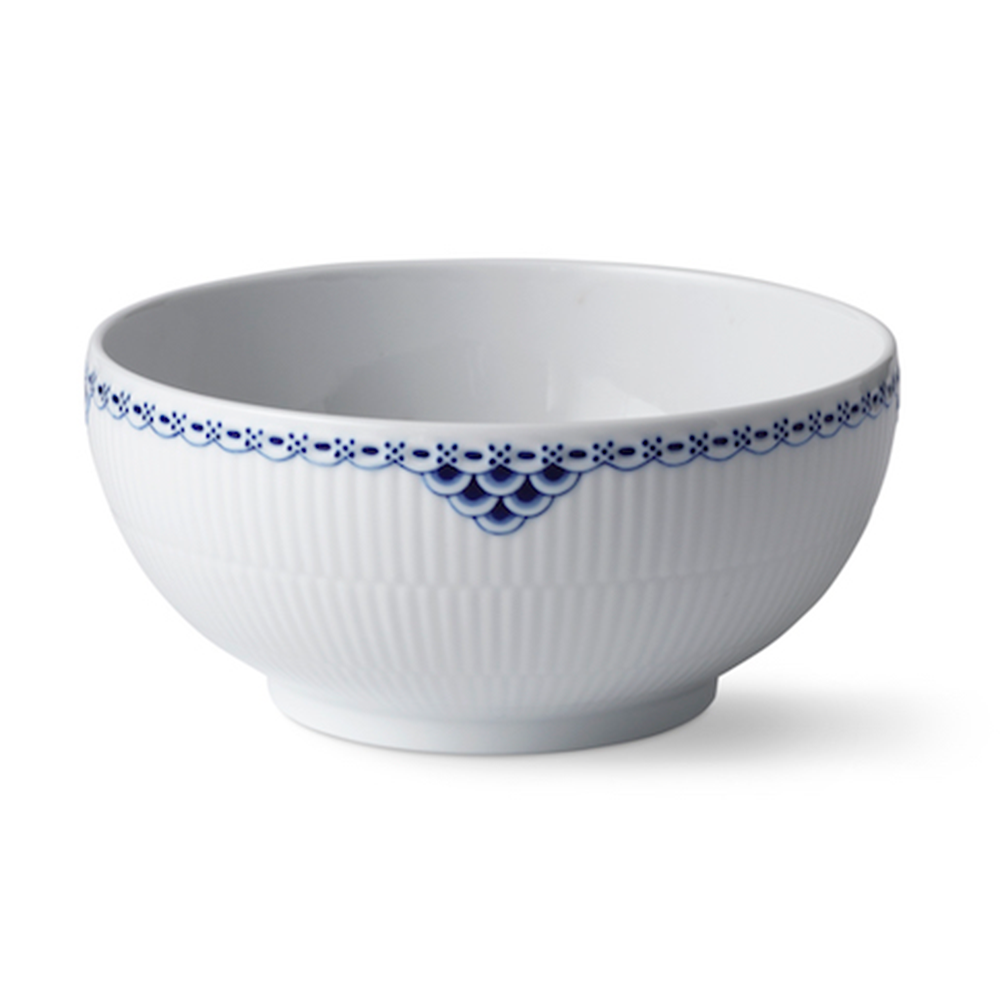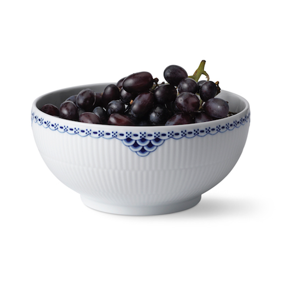 ロイヤルブルーのレースをあしらったハンドペイントが美しいボウル。 サービング用でも銘々用でもお使いいただきやすいサイズです。ヌードルボウルとしても活躍します。