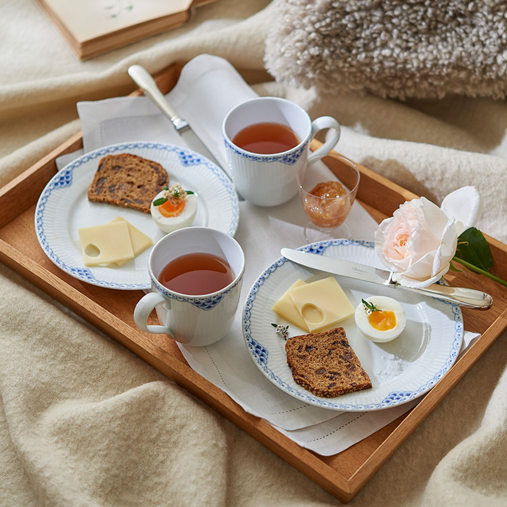 宝石をちりばめたティアラのようなテーブルウエア。朝食時やティータイム時に使いやすいアイテムをセットにしました。ロイヤル コペンハーゲンの食器を揃えたいけれど、何から始めてよいかわからない、という方やギフトにお勧めの組合せです。