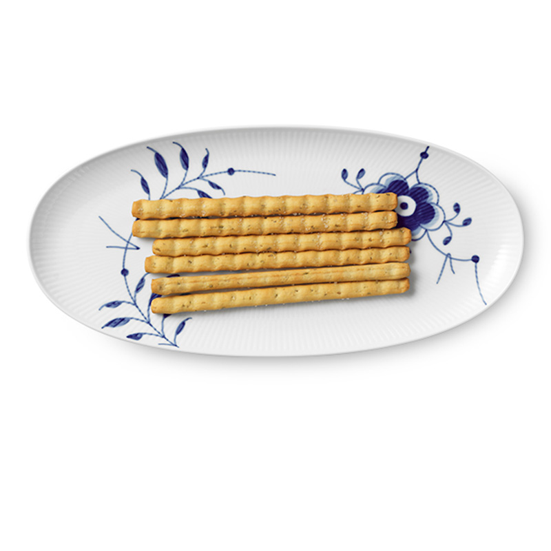 センターピースとしてテーブルに華を添える。37cmの長いオーバルディッシュは日常からパーティまで、テーブルを華やかに彩ります。モダンなテーブルからクラシックなテーブルまで似合うデザインです。ブルーフルーテッド メガの大胆なパターンが、お料理のアクセントに。