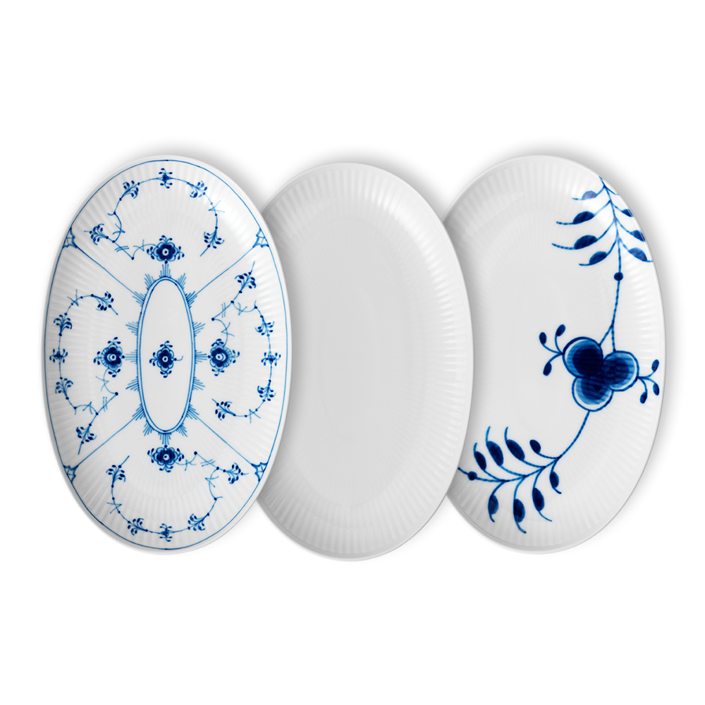 ブルーフルーテッド プレイン、ホワイトフルーテッド、ブルーフルーテッド メガの3種類のプレートセットです。