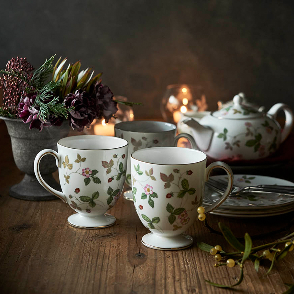 2025年に誕生60周年を迎えるウェッジウッドを代表するロングセラーシリーズ「ワイルド ストロベリー」から、曲線が優しい印象の“リー”シェイプのマグをペアにしてご提案いたします。