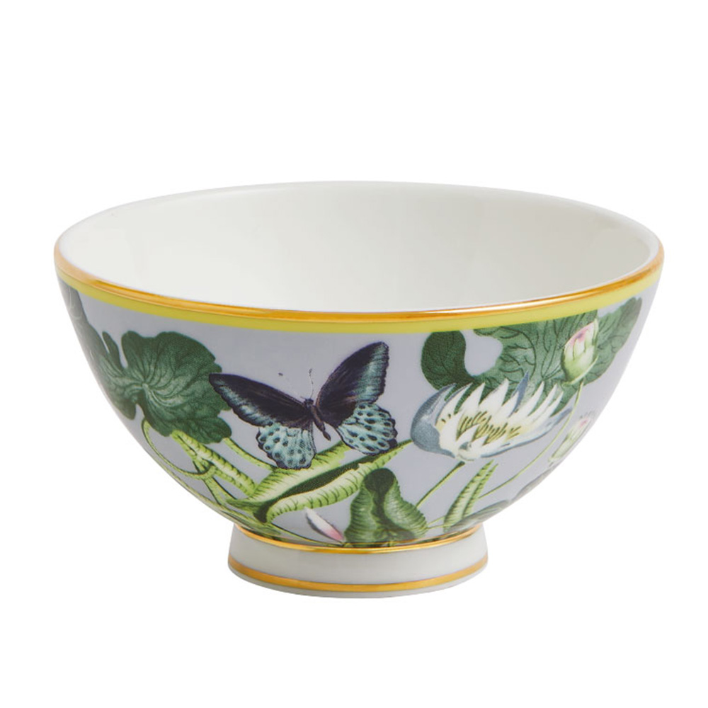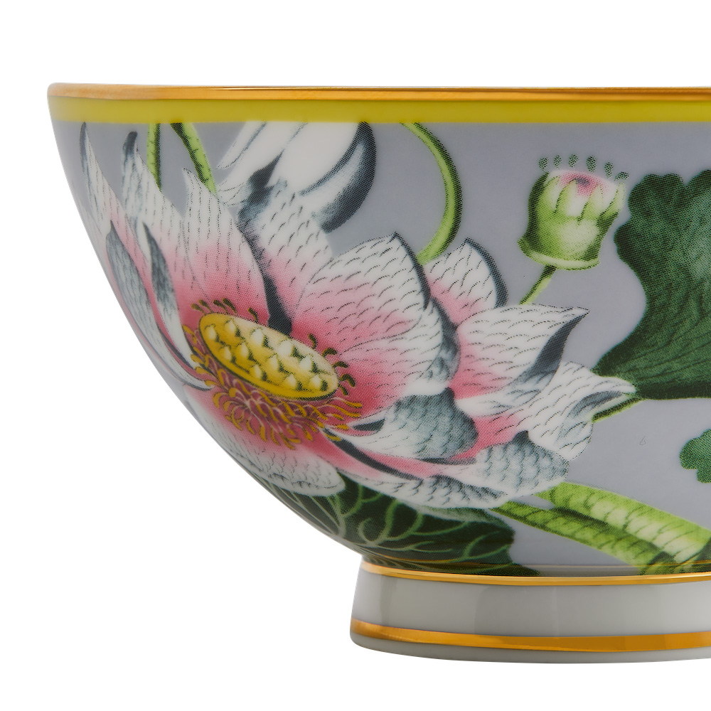 ワンダーラストシリーズの中からウォーターリリーにフォーカスし、ラインナップが拡張します。美しく大きく咲き誇る花は、アマゾンの熱帯気候の恩恵を受けて育った睡蓮です。このパターンはジョサイア・ウェッジウッドの長男で、英国王立園芸協会の設立者のひとりであったジョン・ウェッジウッドが、外来植物の栽培に強い関心を持っていたことから 1800 年代に開発されたウォーターリリー柄に着想を得ています。