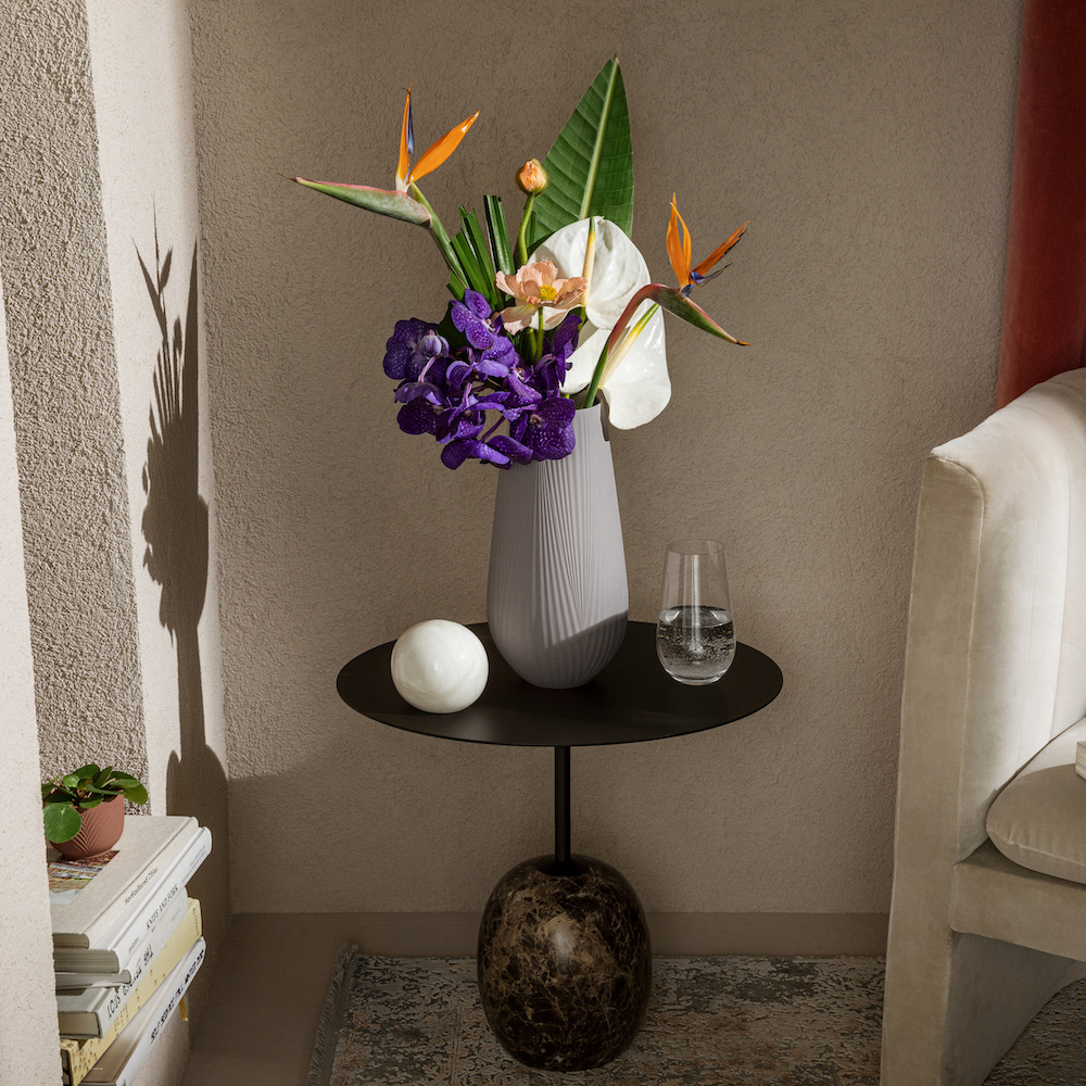 17世紀末に創始者ジョサイア・ウェッジウッドの手により誕生した「ジャスパーウェア」。一つずつ異なる葉脈をモチーフにした花瓶。シックなジャスパーカラーがインテリアに馴染み、花を引き立てます。引越し祝いにも最適です。