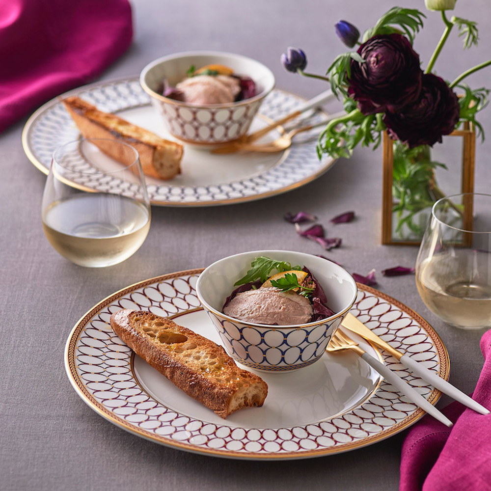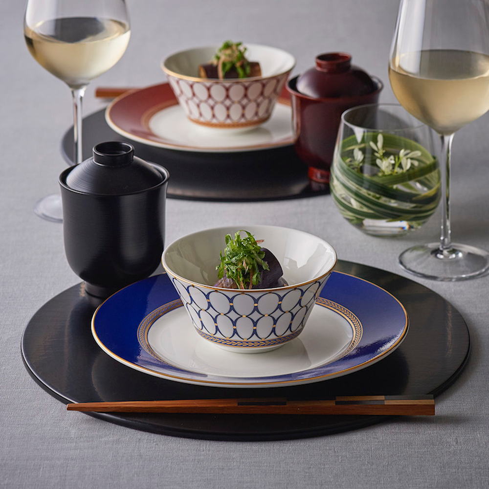 「ルネッサンス」は、ウェッジウッド創業時のネオ・クラシカルスタイルを現代風にアレンジしたパターンです。連続するオーバル(楕円)模様は、2世紀を超えて愛されてきたウェッジウッドならではの繊細なジャスパー カメオがモチーフとなっていて、シックなレッドシックなレッドと、ゴールドのカラーコンビネーションを効かせた、クラシック&モダンなデザインです。