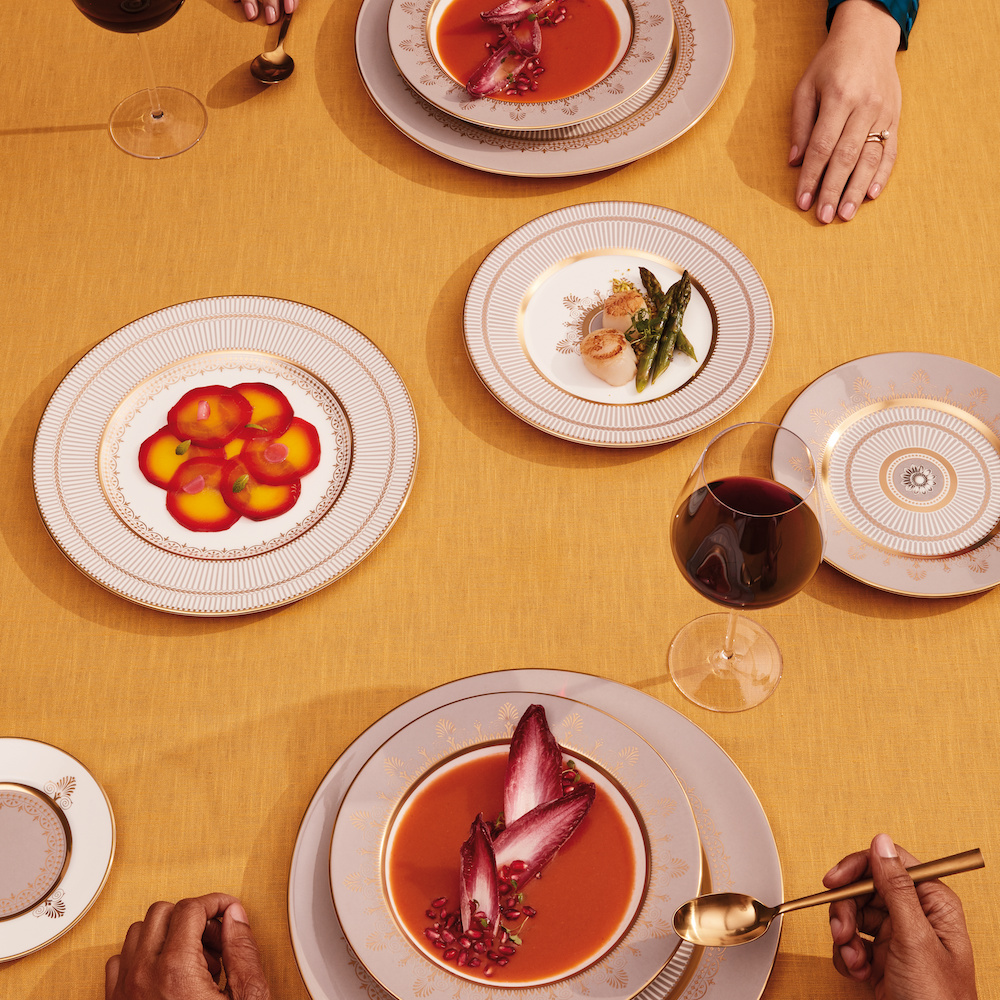 上品な金彩色と温かみのあるグレージュカラー。ウェッジウッドのネオクラシック・スタイルの象徴的要素「アンセミオン」「コロネード」「ローレル(月桂樹)」「カメオ」などのモチーフが取り入れられています。家時間の楽しみ方を知った今、日常使いの贅沢な食器を。